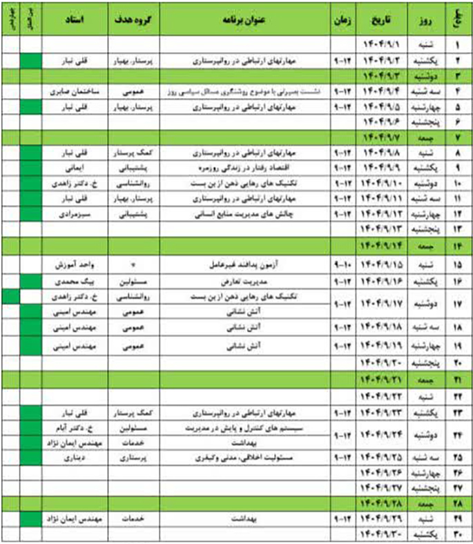 برنامه زمانبندی کلاس های آموزشی آذرماه 1404