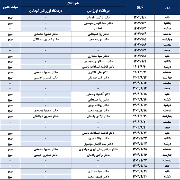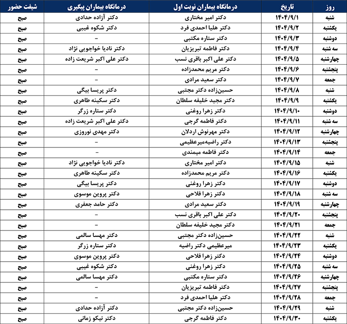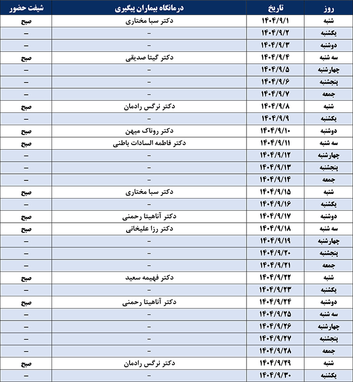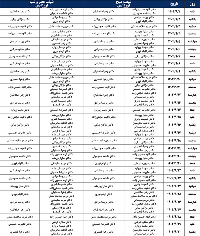 برنامه حضور دستیاران روانپزشکی پیگیری اورژانس /// آذر ماه 1404